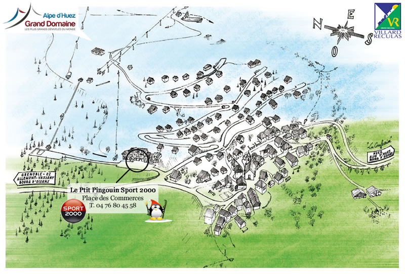 Le magasin est situé au pied des pistes de la station village d'Alpe d'Huez Grand Domaine Ski. Villard Reculas offre la possibilité de skier sur les 250 km de pistes de ce magnifique domaine qui s'étage entre 1200 et 3330 mètres d'altitude. Pour les moins aventureux, le domaine de Villard Reculas offre à lui seul des dénivelés et un nombre de pistes qui satisferont pleinement les débutants ou les skieurs occasionnels.